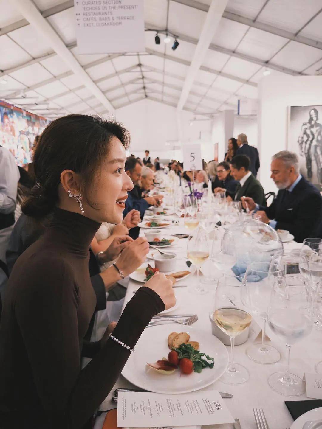 晚宴中,章泽天坐在Frieze老板对面,相谈甚欢。凭借京东老板娘的身份,她社交能力出众、人脉广泛,在白人圈备受欢迎,频繁现身各类晚宴。