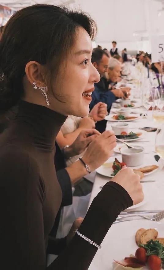尽管打底衫普通,但章泽天搭配了钻石手链与星星主题钻石耳饰,瞬间提升整身穿搭亮点。晚宴食物看似平常,竟有小红萝卜。
