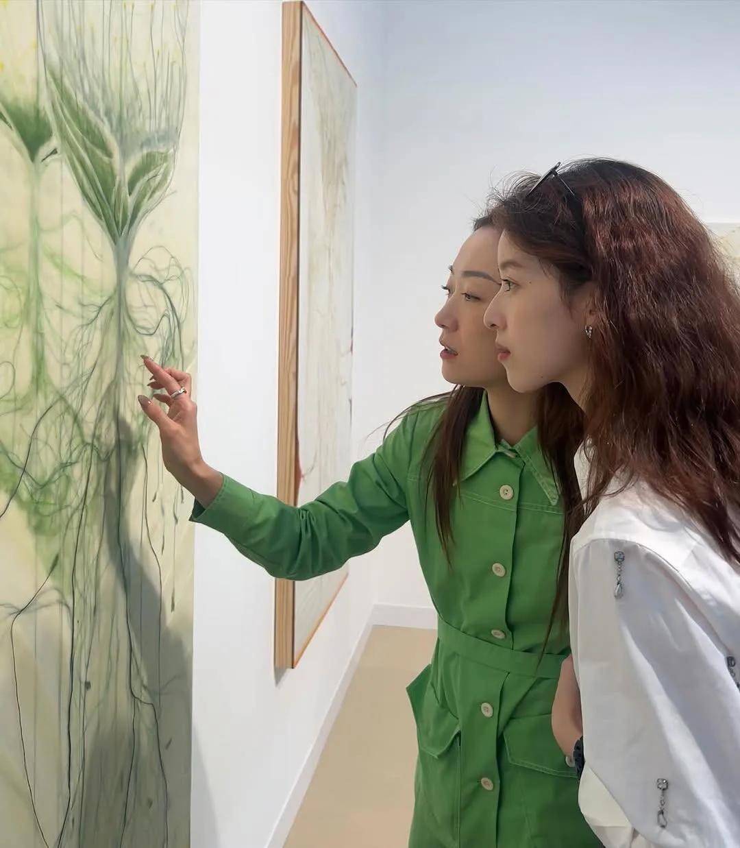 章泽天与杜海涛在艺术展相遇,她为杜海涛讲解画作,杜海涛一旁佯装欣赏,摆拍痕迹明显。